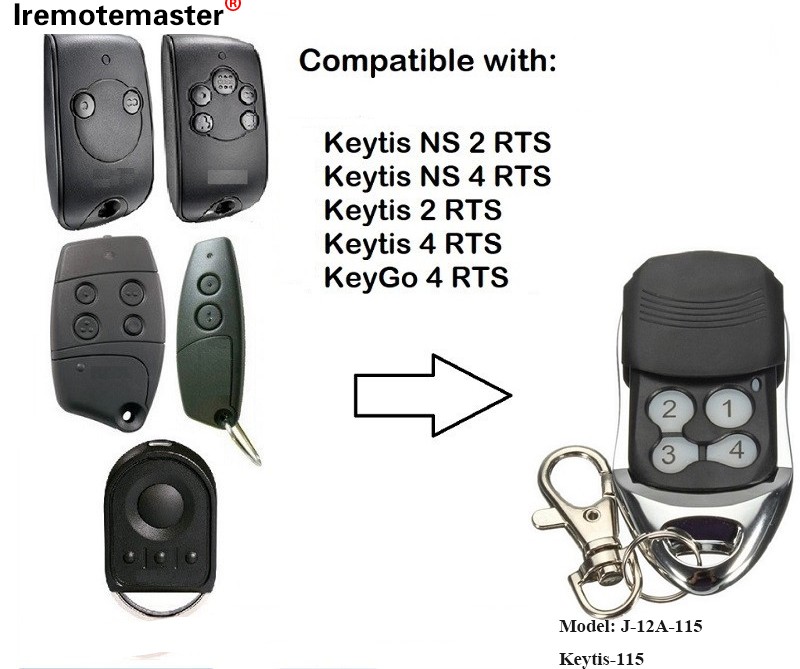 Za Keytis NS 2 RTS Keytis NS 4 RTS Daljinski upravljalnik za garažna vrata 433,42MHz Odpirač za garažna vrata Združljiv s Keytis 2 RTS Keytis 4 RTS KeyGo 4 RTS